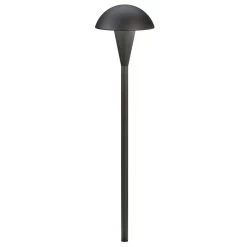 Eclipse 12V 18 inch Outdoor Path Light features a dome cap which creates a soft, warm circular glow of light. Available in Textured Black or Textured Architectural Bronze. One 24.4 watt 12 volt wedge bulb is included. Includes 8 inch in-ground stake, 24 inch leads, and cable connector. 9 inch width x 18.5 inch height. UL Listed for wet locations. Required transformer sold separately.