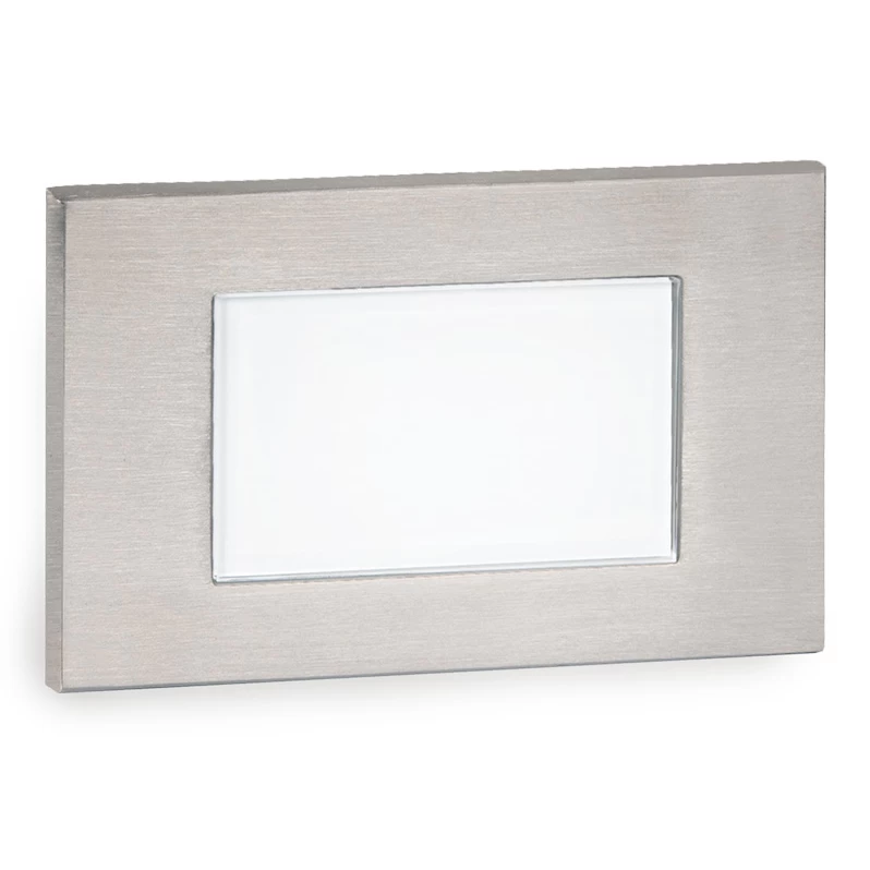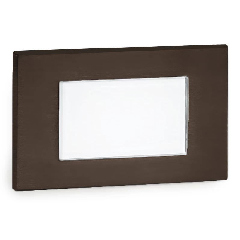 12V Frame Horizontal Landscape Step / Wall Light is designed for safety and style on stairways, patios, decks, balcony areas, walkways, and building perimeters. Creates an attractive, romantic impression at night. Constructed of corrosion-resistant aluminum alloy with a Black, Bronze, or White finish or Stainless Steel. Fits into 2 inch x 4 inch junction box. Magnetized design for easy installation and maintenance. Protected against high-pressure water jets. One 2 watt 12 volt Amber color temperature LED module is included. Dimmable with low-voltage magnetic dimmers, sold separately. Magnetic landscape transformer required, not included. 5 inch width x 3.1 inch height x 0.25 inch depth. Can be installed vertically or horizontally. IP66 rated. UL listed.