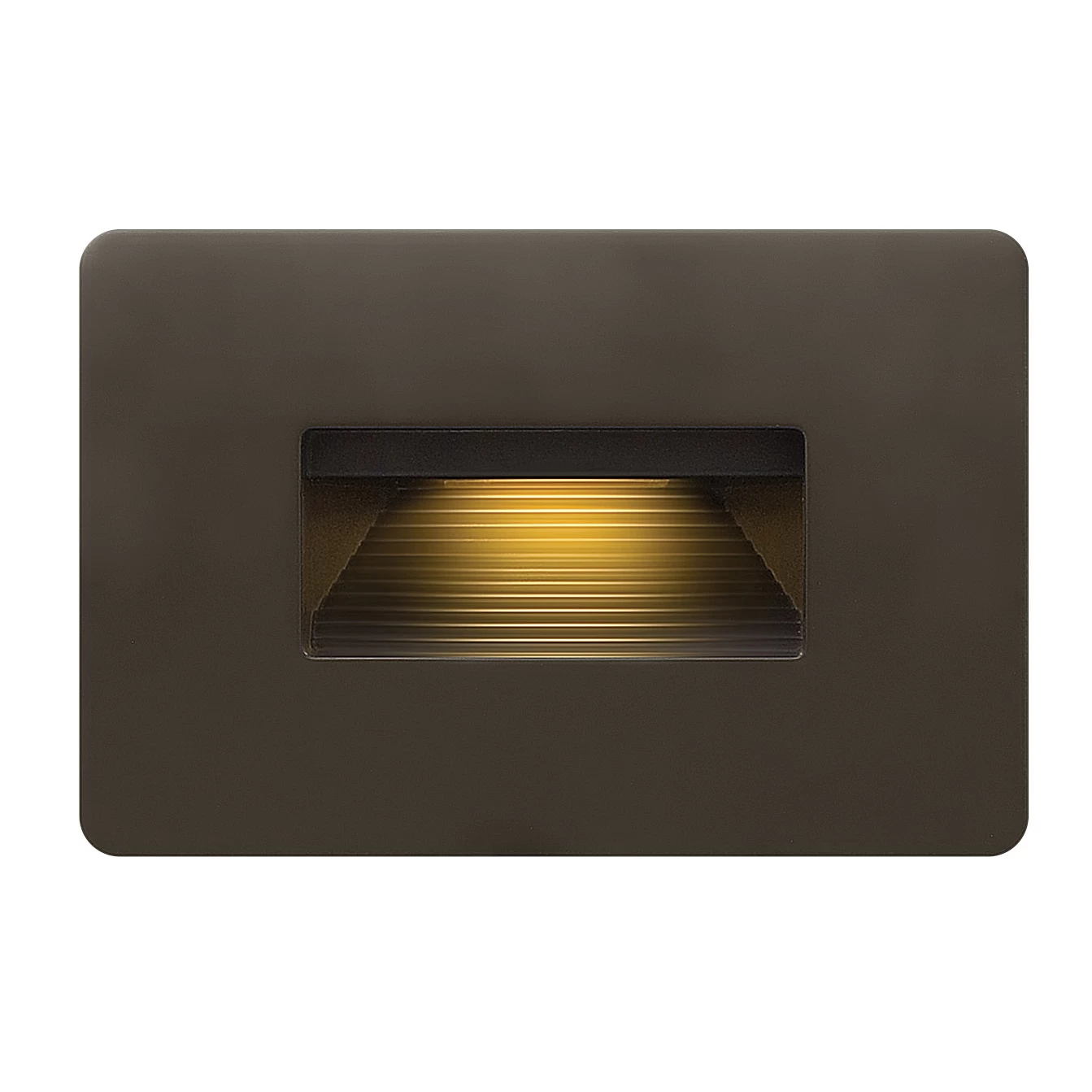 Hinkley’s 12V Luna Horizontal Step Light features a Bronze, Satin Black, Matte Bronze, Satin White, or Titanium finish. Made from die cast zinc aluminum alloy. Fits in standard junction box. Accessories included: Wiring kit. One 3.8 watt 12 volt LED module is included. 4.5 inch width x 3 inch height x 1.5 inch depth. UL listed for wet locations.