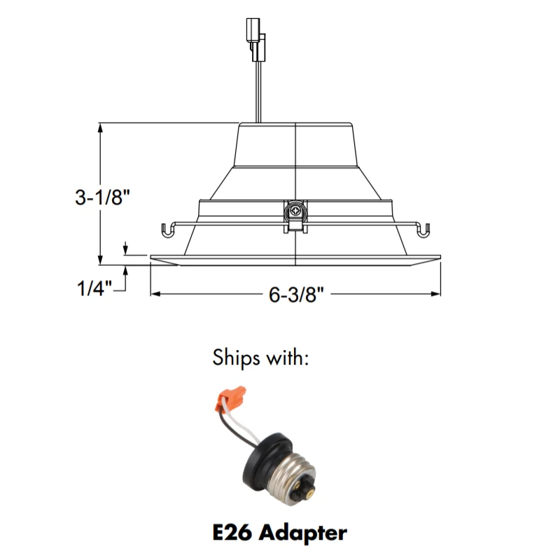With Juno Retrofit LED Basics Series 5RLD Gen-4 5 inch trim modules, upgrading your existing 5 inch recessed housings with medium base sockets is inexpensive and nearly as simple as replacing an incandescent lamp. Rated for use in IC or Non-IC housings. Constructed of die-cast aluminum available with a White trim and White baffle reflector and regressed polycarbonate lens. Includes 8 watt LED with choice of 2700K or 3000K color temperature, 700 lumens, 90+ CRI. Trim ships with a medium base socket adapter. UL listed. Wet location listed (indoor covered ceilings only). Energy Star certified. Title 20/Title 24 compliant. 5 year limited warranty. Dimmable to 5% with many incandescent, magnetic low voltage or electronic low voltage dimmers (see attached manufacturer dimmer compatibility reference for compatibility).