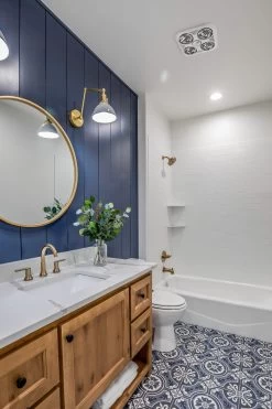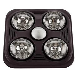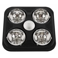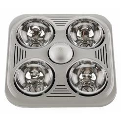 The A716R Exhaust Fan with Heater and Light combines a low-noise bathroom ventilation fan with a powerful, efficient heater and a light, providing immediate warmth when you step out of the shower while quietly clearing excess moisture. Four anti-blast infrared heat lamps provide maximum warmth throughout the bathroom. Two or four lamps can be turned on for varying heat levels. The fan, heater and light may be wired separately, and a 4-function wall switch is included. The four heat lamp bulbs and a 60W incandescent light bulb are also included.