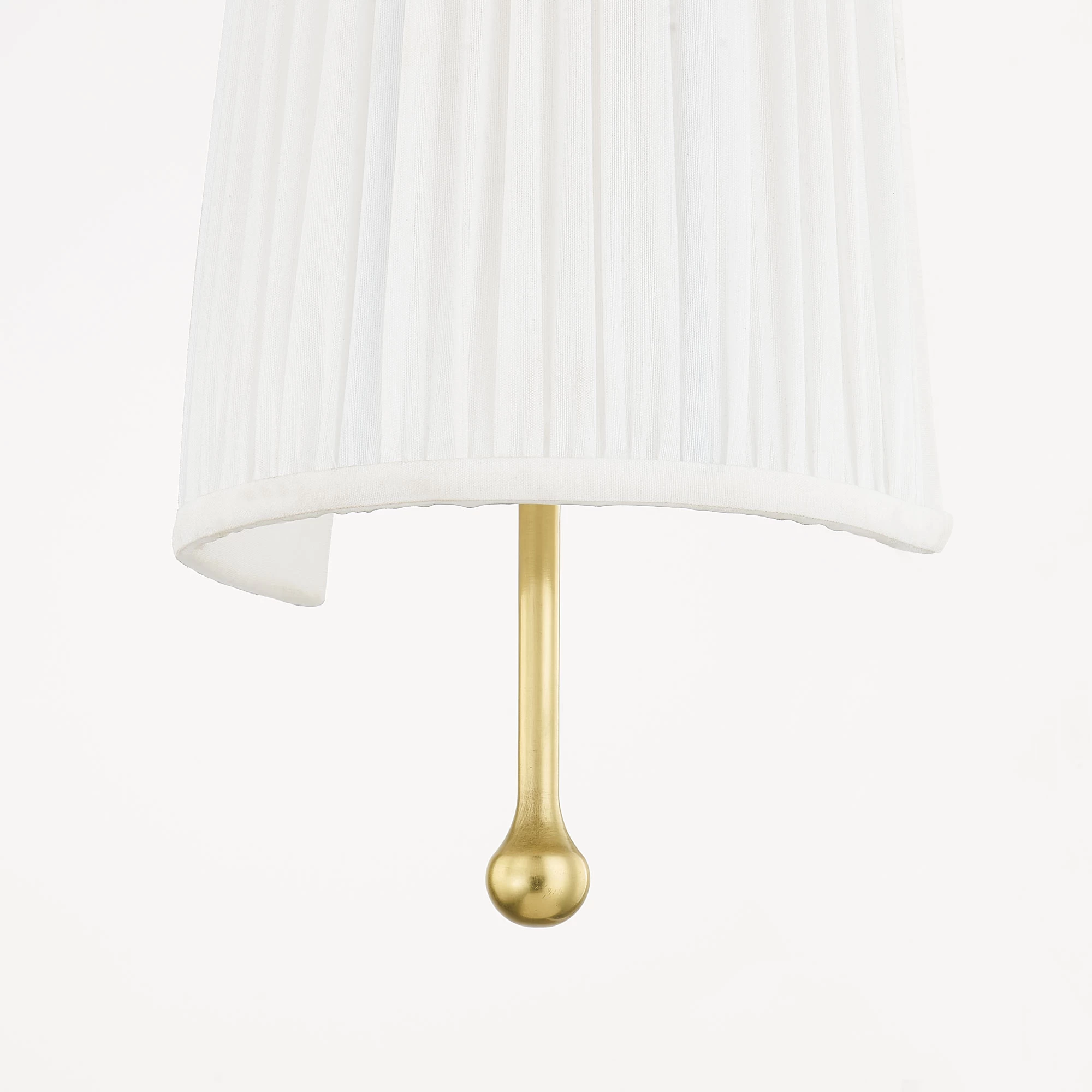 Prim and proper, the Adeline Wall Sconce shines with fine feminine details. An elongated aged brass stem peeps through the bottom, grounding the design. The white fabric shade features exquisite pleating, lending a crisp quality to the transitional wall sconce.