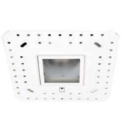Aether 2 Inch Square Trimless (invisible) Wall Wash features die-cast aluminum construction in Brushed Nickel, White, Black or Haze finish. Compatible with a shallow housing designed to fit in tight plenum spaces with complex HVAC ducts, sprinkler pipes, and conduit runs. 2 inch trim aperture and 2 inch housing height. Accommodates ceiling thickness of 0.5-1 inch. Universal input voltage (120V-277V). Choice of 2700K, 3000K, 3500K, or 4000K color temperature and 85 or 90 CRI. 5 year WAC Lighting product warranty. UL listed. Suitable for wet locations. Title 24 Compliant. A complete fixture includes a housing and trim, sold separately.