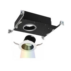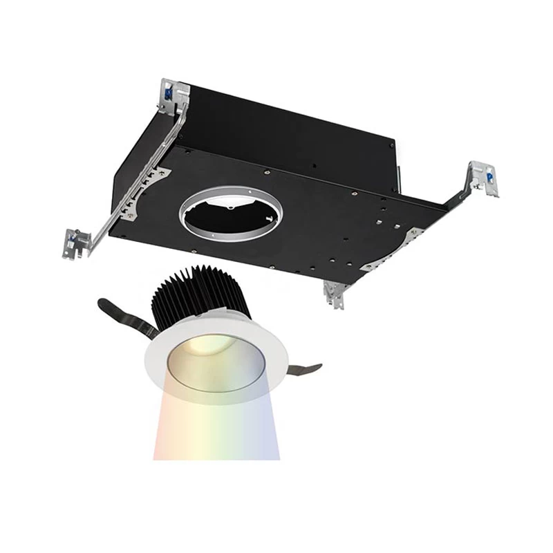 Aether 3.5 inch Color Changing Shallow Round Wall Wash was designed to fit in tight plenum spaces with complex HVAC ducts, sprinkler pipes, and conduit runs. Die-cast aluminum trim with extruded aluminum heat sink. Available in powder-coated White with a White, Haze, or Black reflector. Integrated 22 watt universal input voltage (120-277V) Color Changing Tunable White LED module. Color and brightness controlled via Bluetooth with the ilumenight IOS mobile app. 35 degree cut-off angle for downlight. 3.5 inch trim aperture and housing height. Accommodates ceiling thickness of 0.5-1.5 inches. Sold as a complete unit, housing and trim included. 5 year WAC Lighting warranty. ETL listed. Wet location listed.