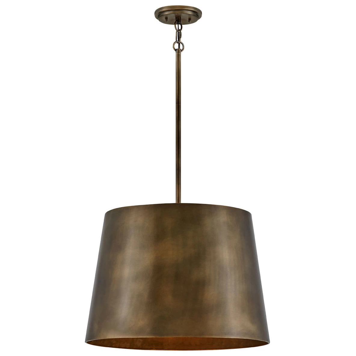 The Adler Outdoor Pendant is bold yet understated blending modern form and function, perfect for your exterior space. The metal drum shaped shade is available in Black or Burnished Bronze. May be hung on a sloped ceiling. Canopy: 5.5 inch diameter. Maximum Overall Height: 50.5 inch. Wet location rated. UL and CSA listed.