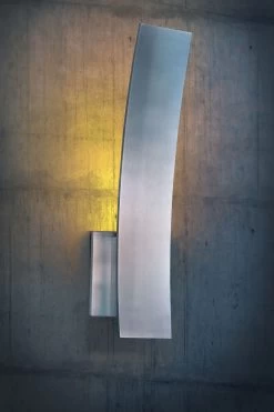 The Alumilux Prime 120V Outdoor Wall Sconce features a sleek, curved Aluminum panel offering LED backlighting to brighten up any indoor or outdoor space.