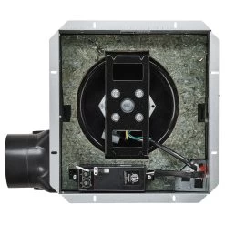 This fixture is IC-rated, suitable for new construction or remodel applications, and can be installed in a wall or ceiling. It fits in 2 x 6 inch construction, perfect for smaller joist spaces. It has rust-proof steel motor housing, a built-in backdraft damper and thermal shutoff, and includes articulating expandable anti-vibration brackets and a detachable connector for 4 or 6 inch ducts. ETL listed for use in a tub or shower enclosure when GFCI-protected.