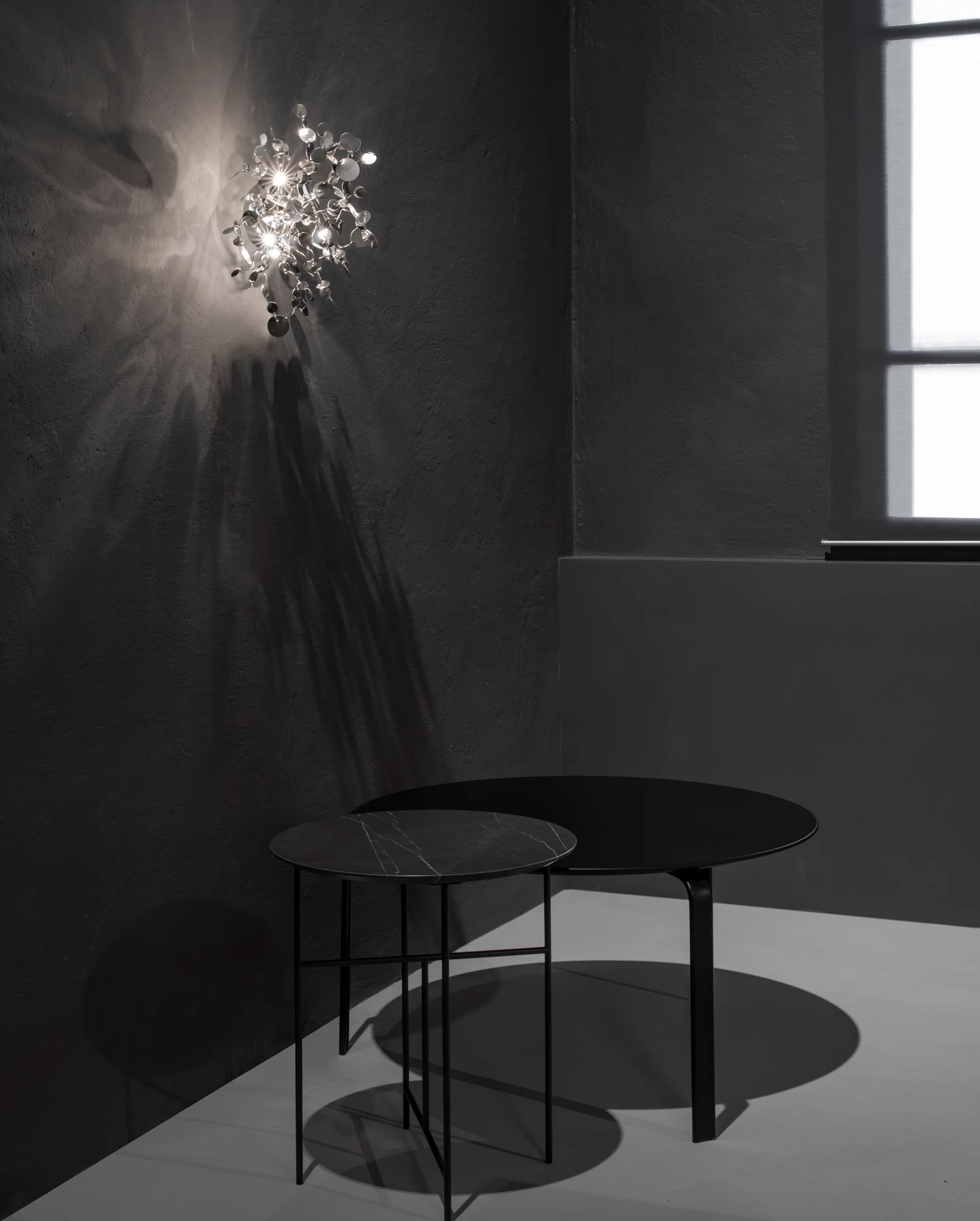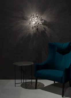 The Argent Wall Sconce creates a shimmering cloud of metal discs that have been meticulously shaped by hand by Terzani craftsmen into clusters of beauty. Once lit, the multiple, angled surfaces of the discs emanate a soft shimmering glow.