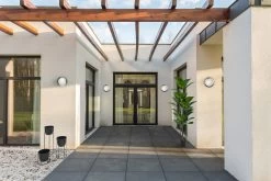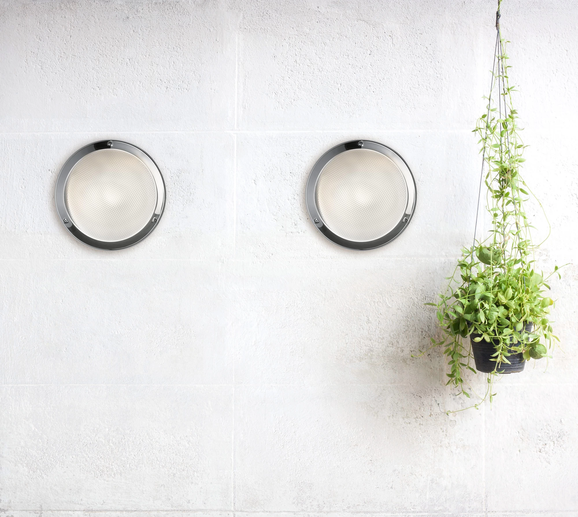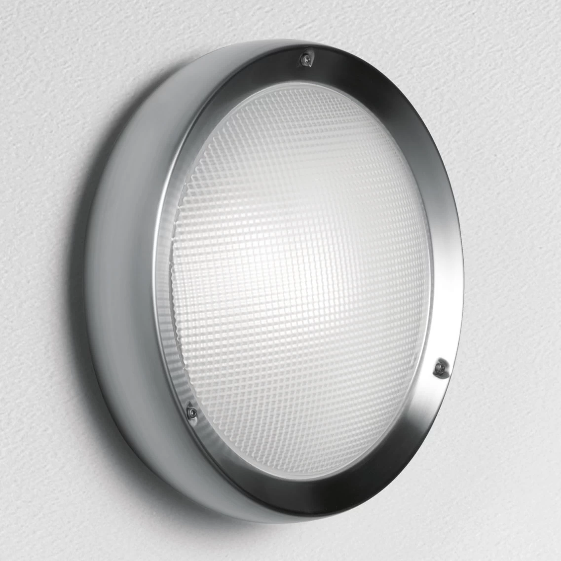 Niki Wall/Ceiling features a molded stainless steel frame and polyurethane seal gasket. Available with a Satin or Polished Aluminum finish with a Prismatic glass diffuser. IP65 rated.