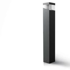 Tetragono Outdoor Bollard features an extruded aluminum square pole with a 3-stage outdoor treated Anthracite finish and UV-resistant diffuser in shock-resistant polycarbonate. Two heights available. Integrated 15 watt 120 volt LED module. 5.13 inch square x 17.7/35.4 inch height. UL listed for wet locations.