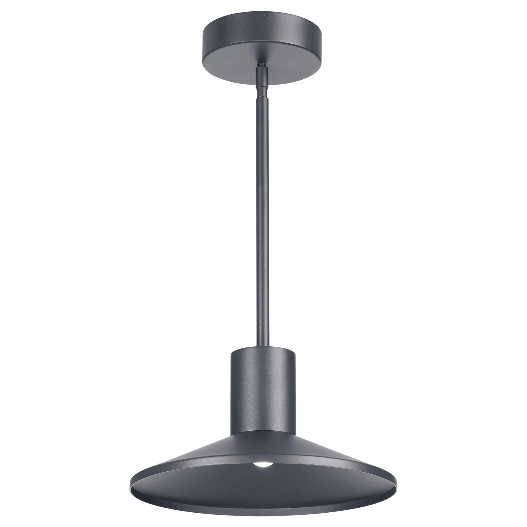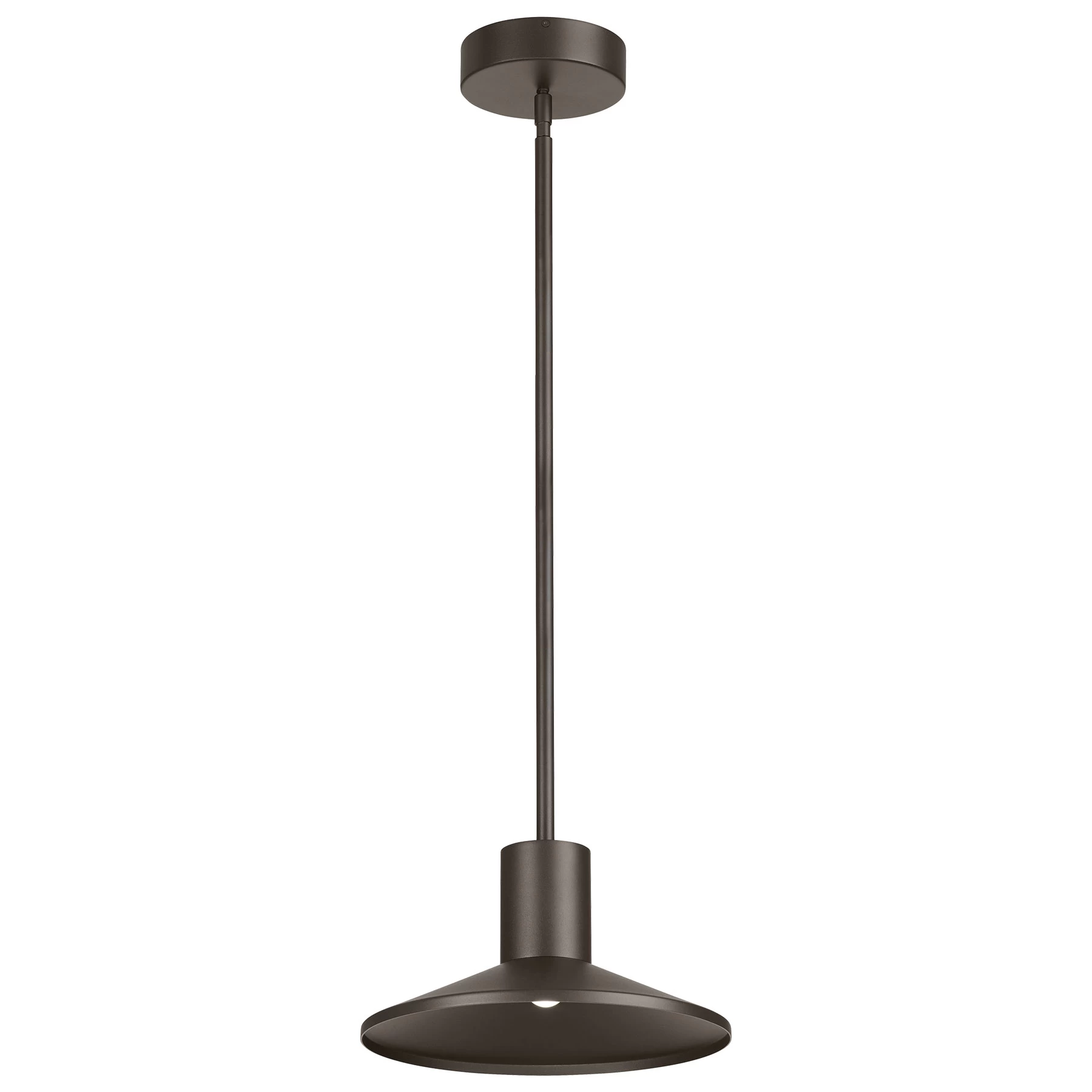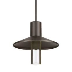 The Ash Outdoor Pendant is a modern take on the classic industrial-style light fixture. Features a sleek metal shade with a clear acrylic lens, or clear acrylic cylinder creating a column of diffused light from under the shade. Made of aluminum in marine-grade powder coat finish Bronze or Charcoal with impact-resistant UV stabilized acrylic lens. Universal 120-277V with integral transient 2.5kV surge protection driver. Includes an 8 watt (low output) or 18 watt (high output) LED module. Symmetric light distribution. Adjustable stem length (one 3, 6 and 12 inch) with a maximum overall height of 34.7 inch. Integrated ball joint that accommodates sloped ceiling up to 45 degrees. Dimmable with an electronic low voltage or 0-10V dimmer, sold separately. 5 year warranty.