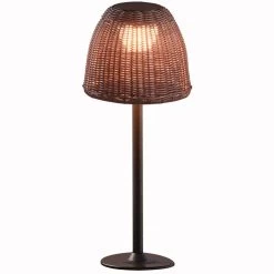 The Atticus Outdoor Path Light is light and simple in design yet offers a range of possibilities through its sophisticated, understated charm. The shade is hand-woven out of recyclable, non-toxic synthetic polyethylene fiber, and inside is a UV-resistant polyethylene globe diffuser. Designed as decorative garden lighting, the Atticus illuminates trees and plants while lending a warm feel to the space. TRIAC dimmable.