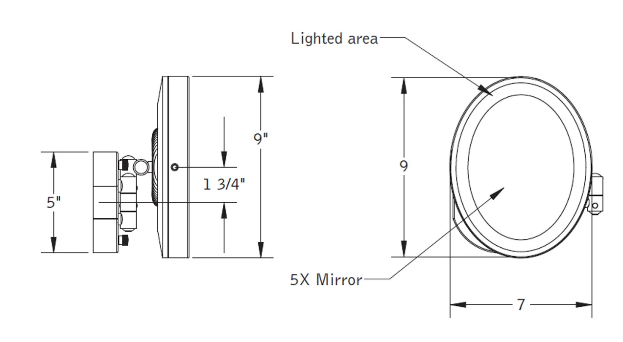 Baci Junior Double Arm Oval Body Wall Mirror has a solid brass construction and optical quality 5x magnification glass mirror with high power natural white LED lighting. Finishes in Satin Nickel, Polished Nickel, Bronze, or Chrome. Damp location rated. UL listed.