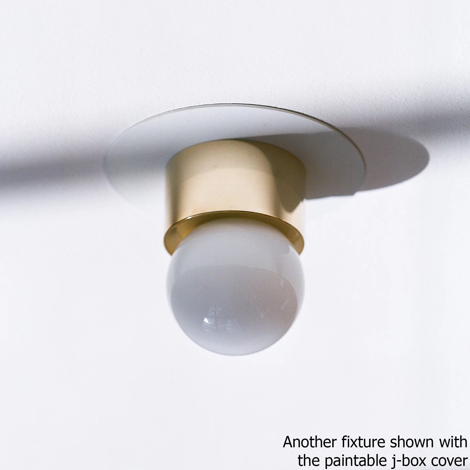 Includes a paintable junction box cover which will cover standard 4 inch junction boxes. The j-box cover extends beyond the fixture and will be visible.