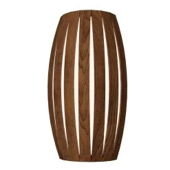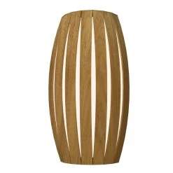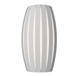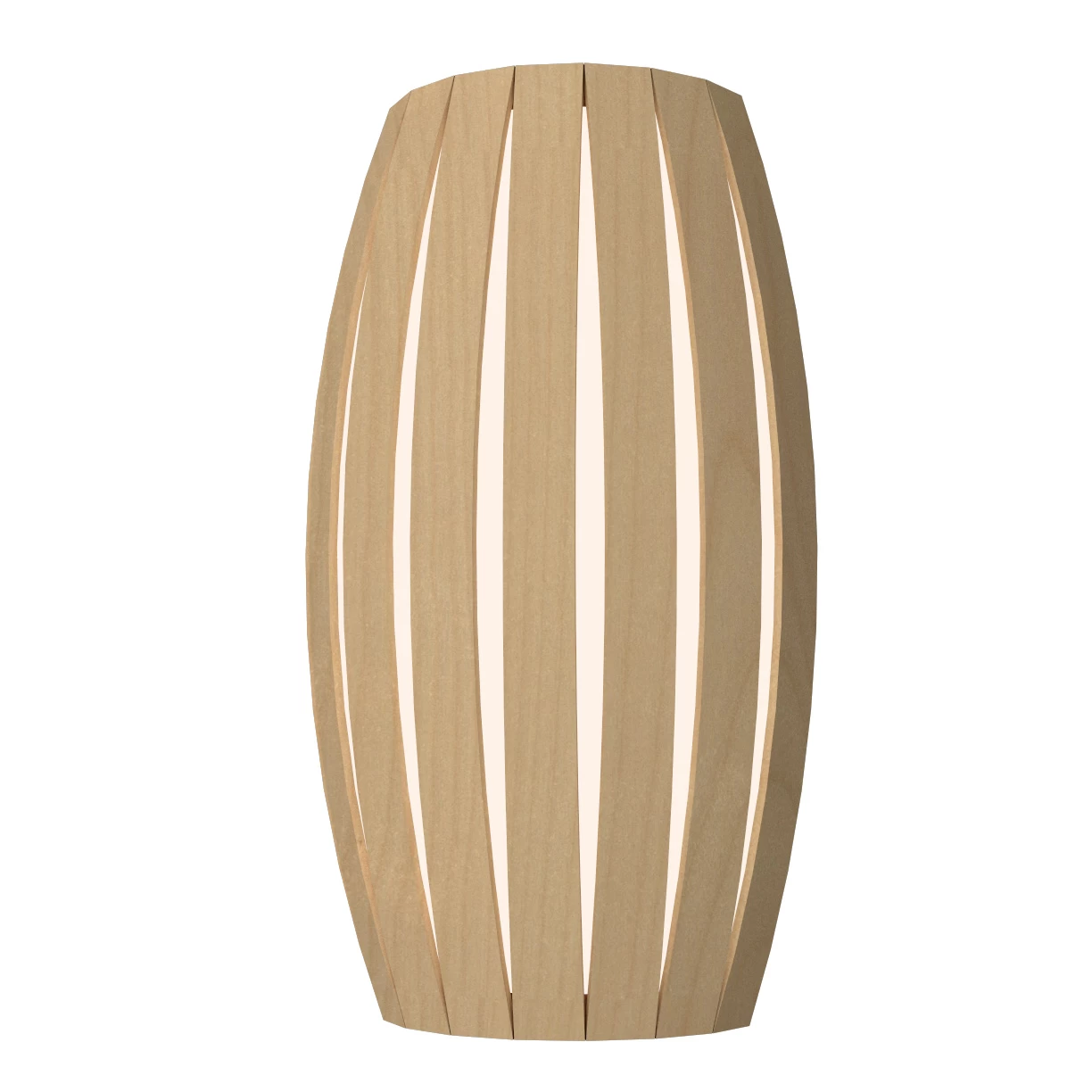 The Barril Wall Sconce brings a clean outdoor vibe to a variety of interior spaces. The woodsy feel of this piece will blend in styles from farmhouse to contemporary. The slatted curved Natural Veneer Wood shade surrounds a White acrylic diffuser.