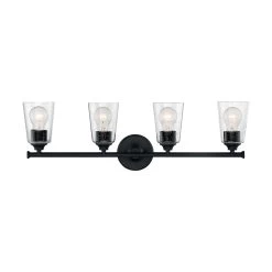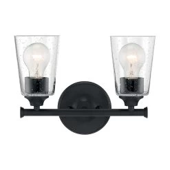 The Bransel Bathroom Vanity Light features Glass and Steel, available in a Matte Black or a Brushed Nickel finish. Choose between one, two, three, or four medium base lamp sockets (bulbs not included). Damp location. UL listed.