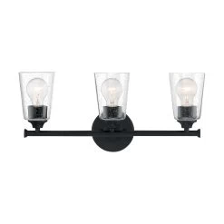 The Bransel Bathroom Vanity Light features Glass and Steel, available in a Matte Black or a Brushed Nickel finish. Choose between one, two, three, or four medium base lamp sockets (bulbs not included). Damp location. UL listed.