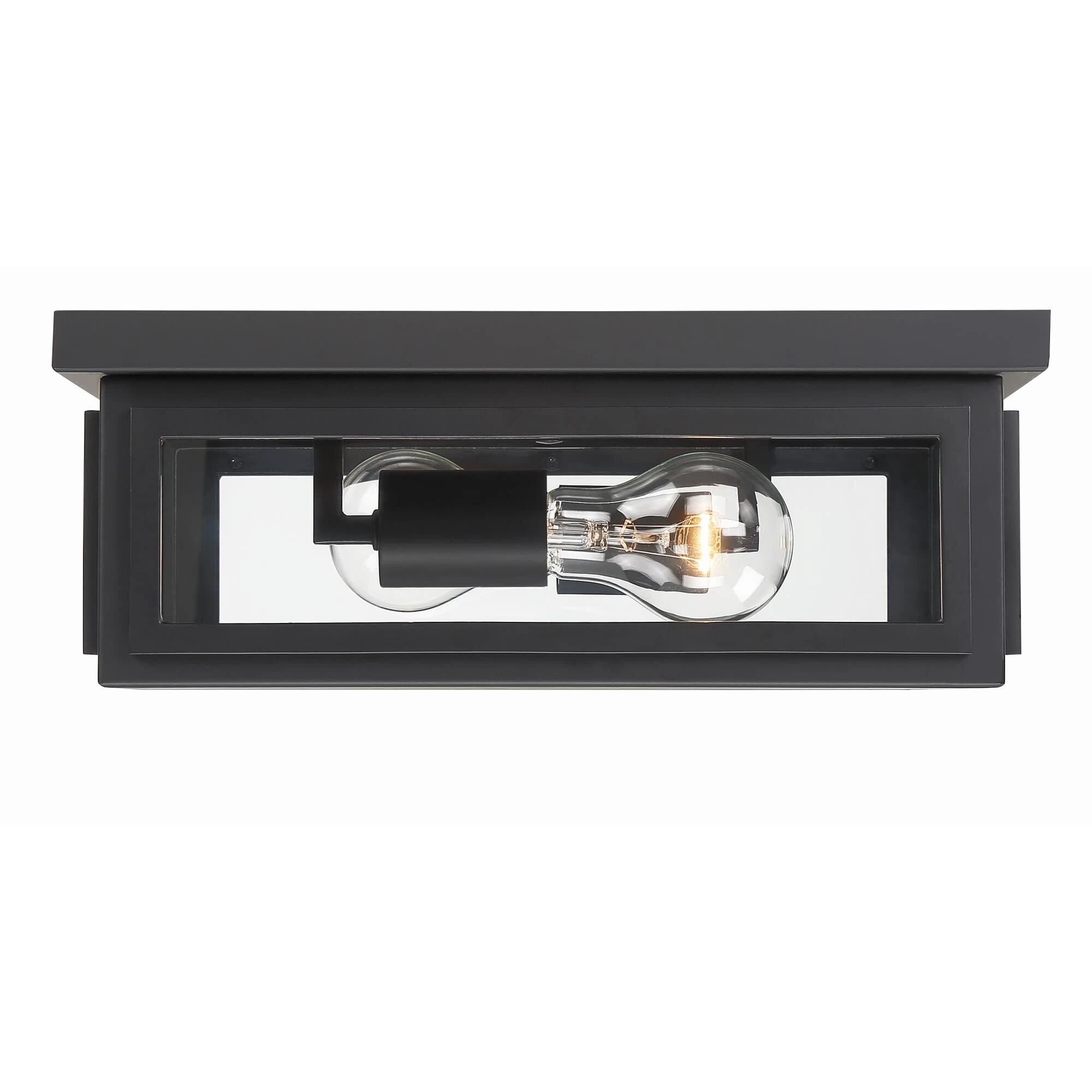 The Byron Outdoor Ceiling Flush Light brings a clean modern look to your exterior space. The bold, architectural frame is complemented by glass panels, casting warm shadows across your area.