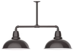 The Cafe Linear Outdoor Pendant brings a traditional 1920’s industrial look to your exterior space. The vintage look of curved arms and dome shades, lined in white, cast warm shadows around your area. The Polyester powder coat finish provides color retention and scratch resistance.