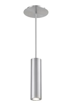 Caliber Outdoor Pendant brings a sleek industrial vibe with a discrete cylinder and minimal mounting hardware. Available with a Black, Bronze, White, or Brushed Aluminum finish. Includes one 6 inch and three 12 inch rods. Wet location rated. ETL listed.