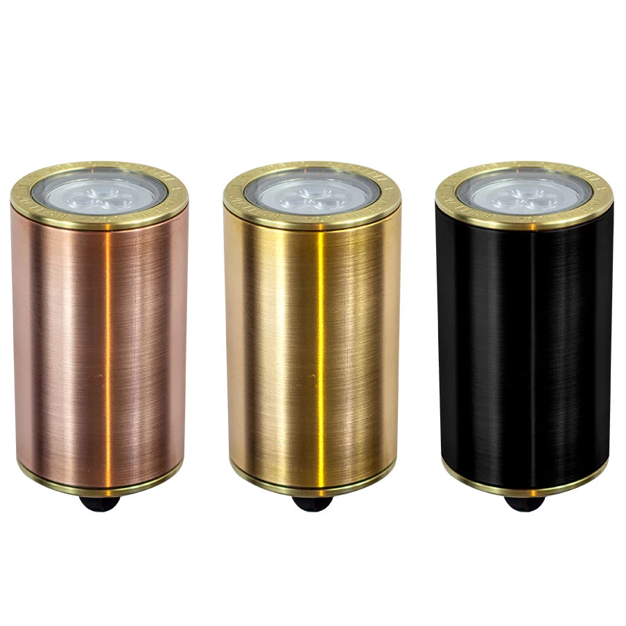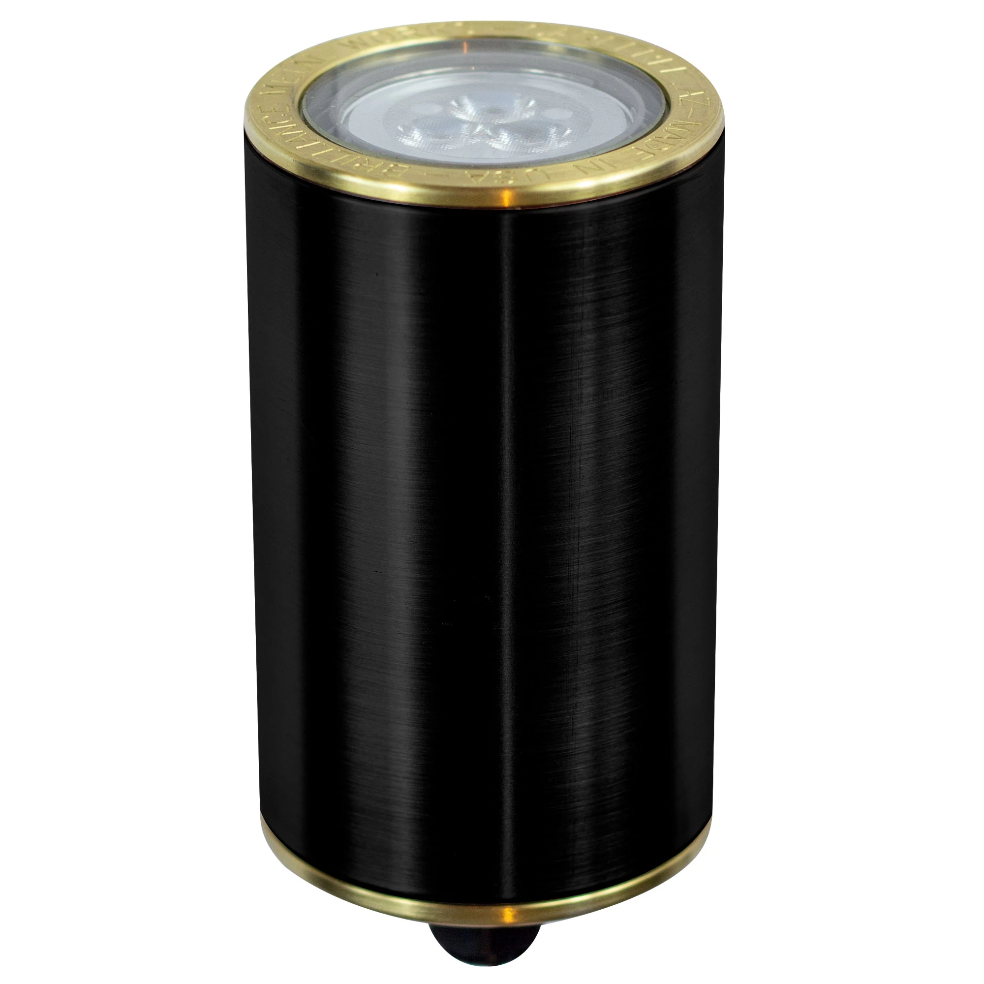 Machined brass or copper finish offers a living finish that weathers over time to a unique patina. Black brass finish with Cerakote series ceramic coating offers superior corrosion resistance, durability, chemical resistance, and thermal stability. Glass lens.