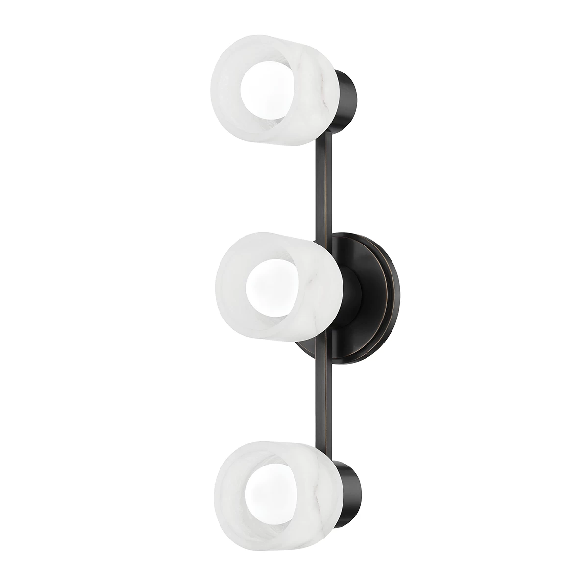The Centerport Bathroom Vanity Light brings a clean sense of order to your space with simple geometry and minimalist details. Alabaster glass is complemented by an Aged Brass, Old Bronze, or Polished Nickel finish. Each piece of Alabaster is unique, containing its own natural veining patters, so no two pieces are exactly the same. May be mounted horizontally or vertically.