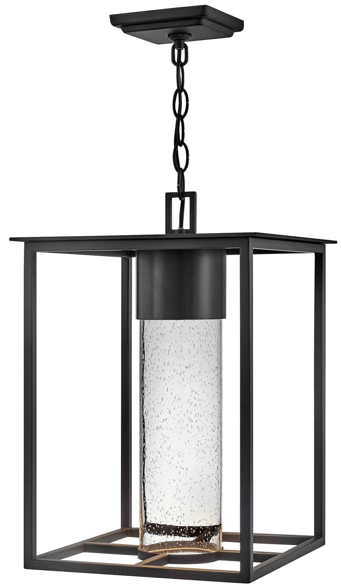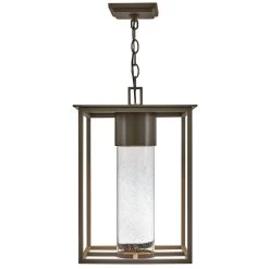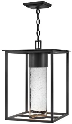 The Coen Outdoor Pendant brings a timeless design with a modern edge to your exterior space. The smooth open frame is complemented by a cylinder of seedy clear glass, casting warm shadows across your area. Canopy: 5 inch square.