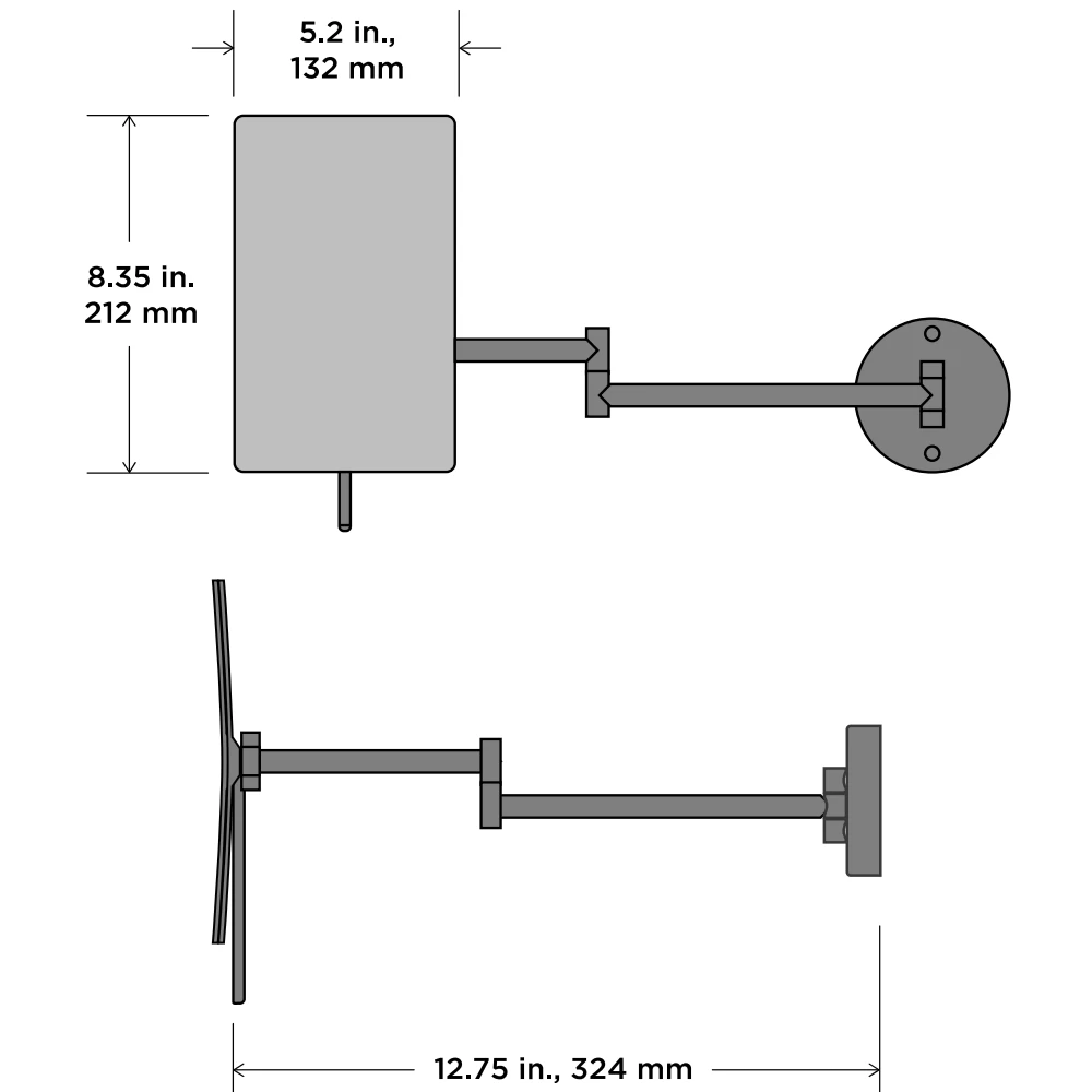 The Contour Wall Mount Makeup Mirror features 5X magnification with an adjustable view angle. Side to side swivel, up and down tilt, a built-in handle to keep the surface smudge free, and double arm to flatten close to the wall.