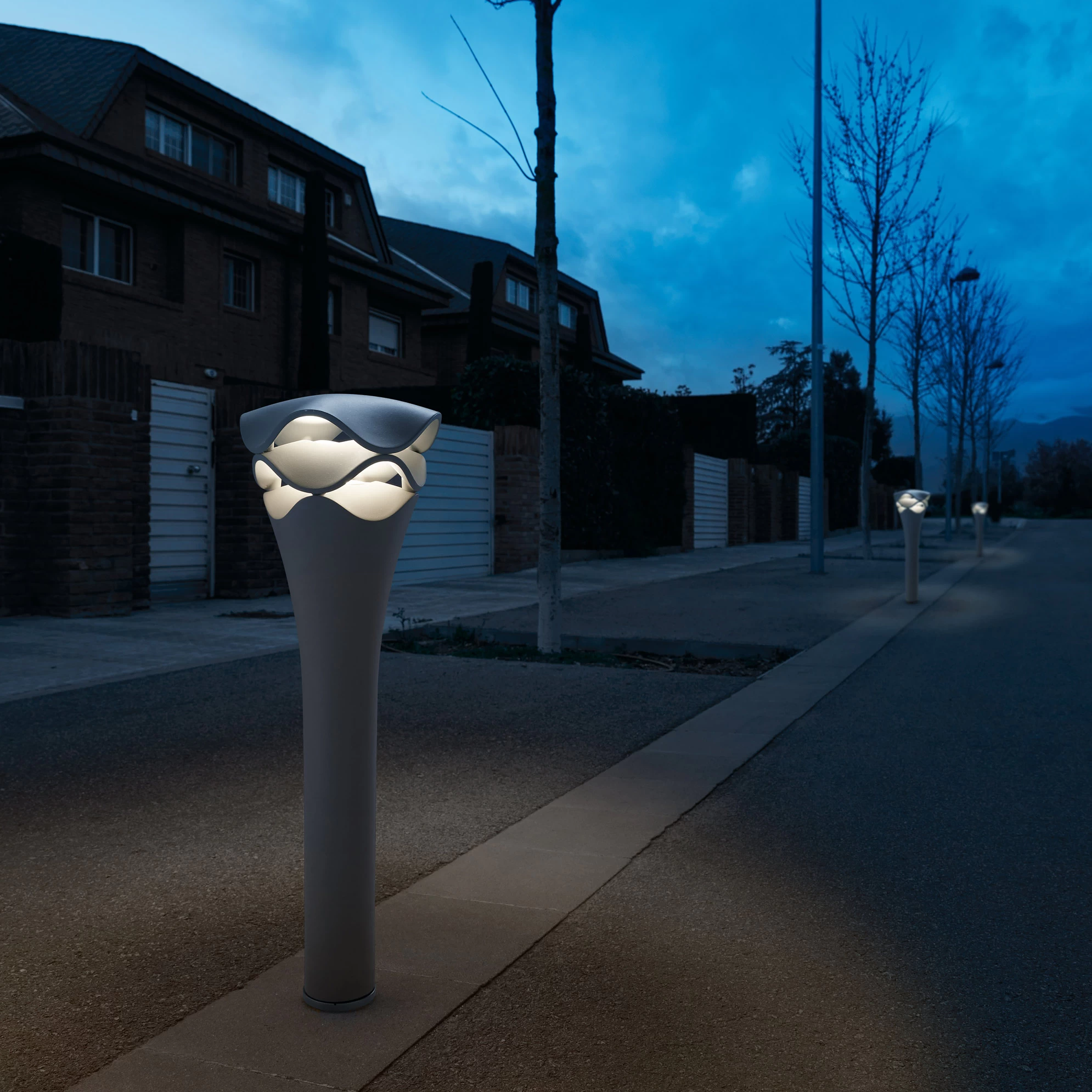 The Cornet Outdoor Bollard is made of high-density polyurethane in Stone Grey with interior elements made of stainless steel. Available in three sizes. Integrated 8 watt 120 volt LED module. Dimmable with TRIAC dimming systems. 10.07 inch width x 10.4/20.5/30.31 inch height. Two anchoring options for bollards: 1. Anchoring to decking or ground- screws and anchor accessories not included. 2. Anchoring to concrete foundation- mounting accessories not included, contact customer service to order. ETL listed. IP55 wet rated.