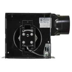 This fan features rust-proof motor housing, a built-in backdraft damper and thermal shutoff. It fits 2 x 6 inch joists and can be mounted on the ceiling or wall. Incudes articulating expandable anti-vibration brackets and a detachable connector for 4 inch ducts. ETL listed for use in a tub or shower enclosure when GFCI-protected.