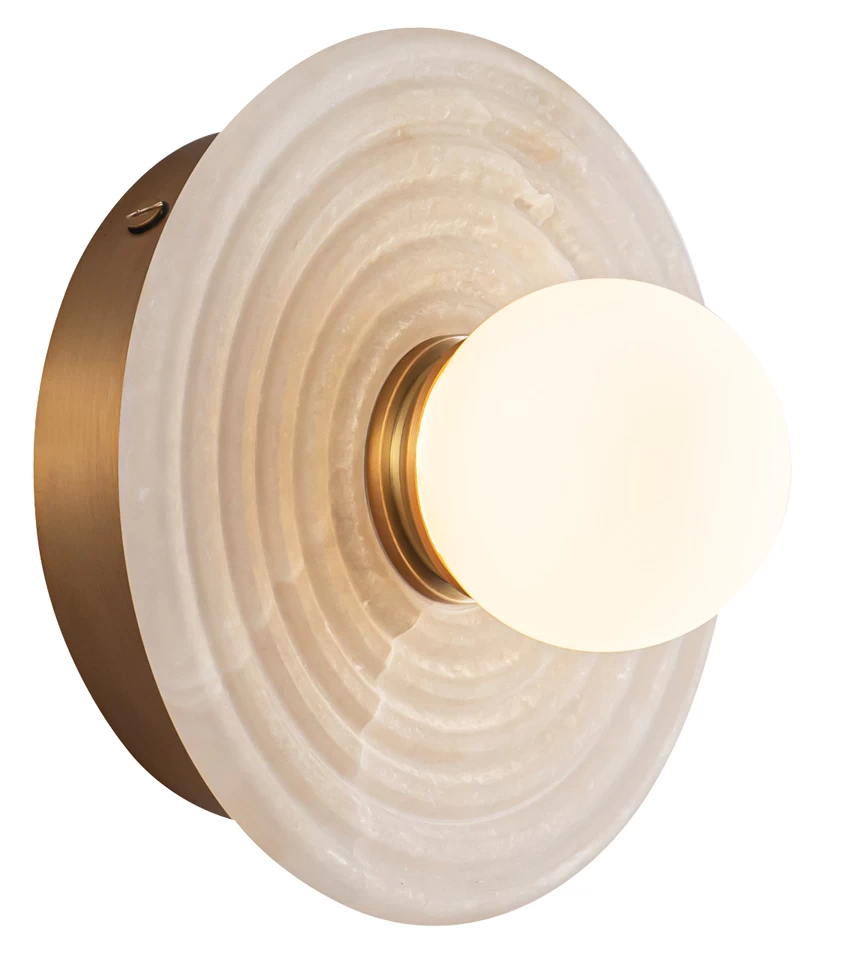 The Dahlia Wall Sconce is inspired by botanical flowers, brings a clean beauty to your interior space. Ribbed alabaster plates are complemented by pearls of lit glass, casting warm shadows across your room. Dimmable with Standard Triac or Low Voltage Electronic dimming.