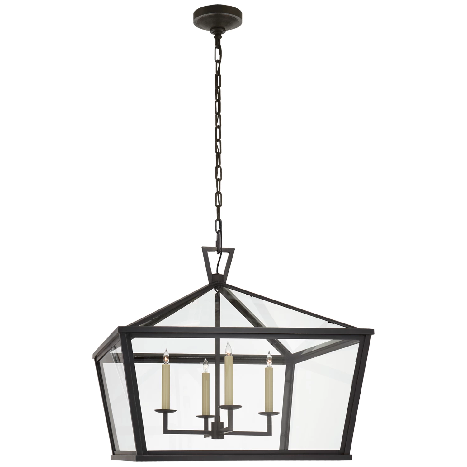 The Darlana Outdoor Wide Pendant adds a clean, simple look to your exterior space. The smooth lantern shaped frame is complemented by Clear glass that casts warm shadows across your area.