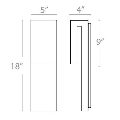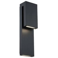 The Double Down Outdoor Wall Light features dual down lights delivering layered lighting from an architectural style with twin down lights emanating from different levels for a tiered effect. Available in Black or Graphite. Integrated 11 watt 120 volt LED light source. 5 inch width x 18 inch height x 4 inch depth. ETL listed for wet locations. ADA compliant.
