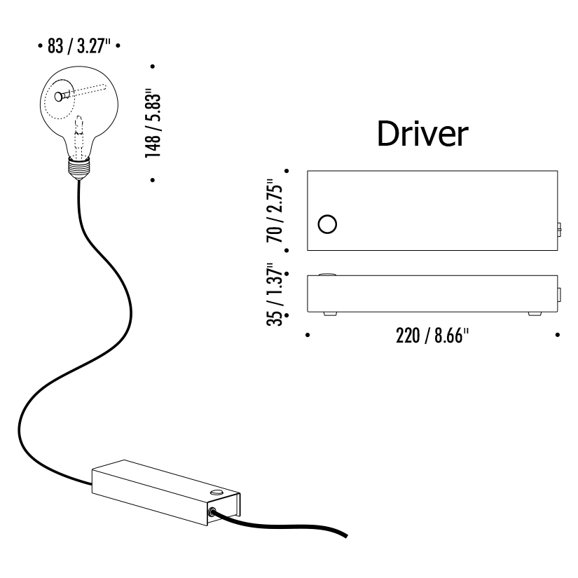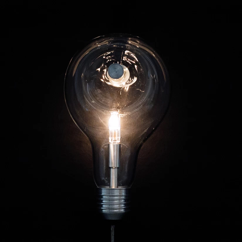 The Edison’s Nightmare Plug-In Wall Light is a tribute to the incandescent light bulb, the invention that has changed the way humans live. The name Edison’s Nightmare refers to the gradual phasing out of incandescent bulbs as they are replaced by more energy-efficient sources of light, symbolized by the nail pinned through the fixture’s glass body. Dimmer switch and driver located on cord.