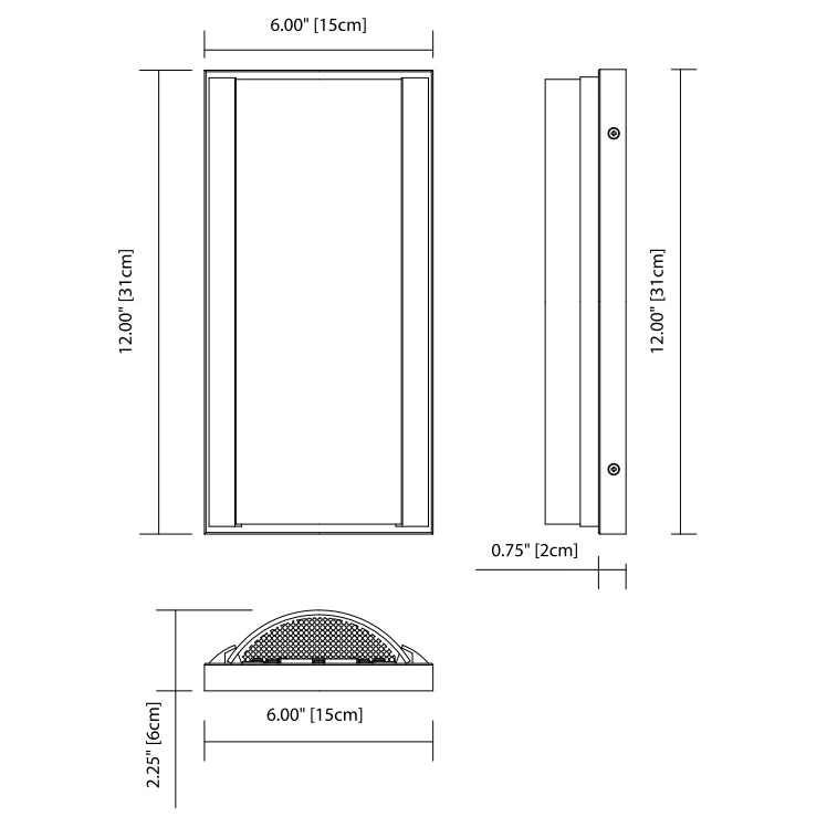 | Size | 6"W x 12"H x 2.25"D |
