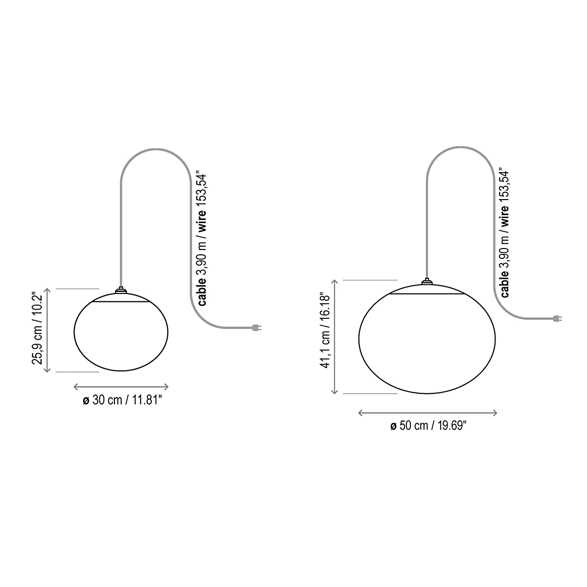 Available in two sizes: 11.81 inches (model S/30/H) and 19.69 inches (S/50/H).