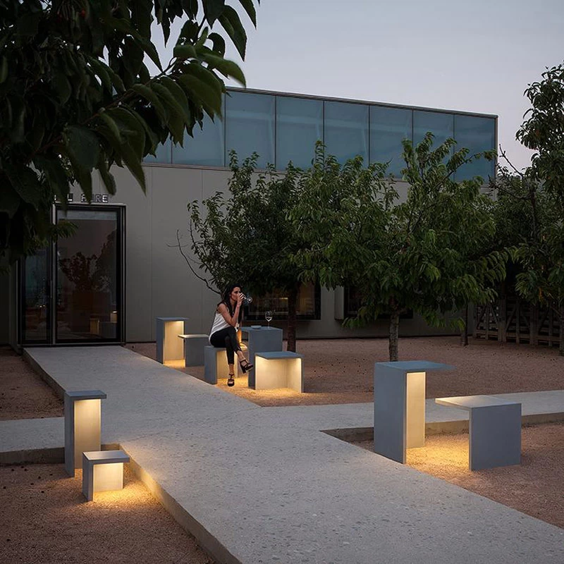Empty Outdoor Seat, designed by Xucla, is where light meets furniture. These pieces aim to integrate a light fixture and table or stool module within a single piece of furniture. They are perfect in a variety of sizes placed all around your outdoor area. perfect for a cozy evening or during a get together. Available with a Concrete Grey finish in two sizes. ETL listed. Wet location rated.
