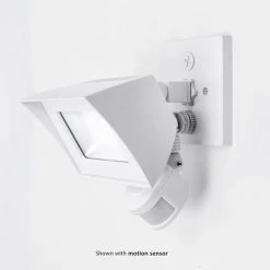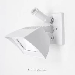 Endurance Outdoor Flood Light features a die cast aluminum factory sealed housing available in Architectural White, Architectural Black, Architectural Graphite, or Architectural Bronze. Features a heavy duty 0.50 inch threaded mounting arm with 360 degree horizontal rotation and 90 degree vertical aiming. Equivalent to 150 watt HID. Dimmable to 10 percent with low-voltage electronic dimmers. Includes two different canopies for surface mount or recessed junction boxes. May be wall or ceiling mounted. Photo and motion sensor available, sold separately.