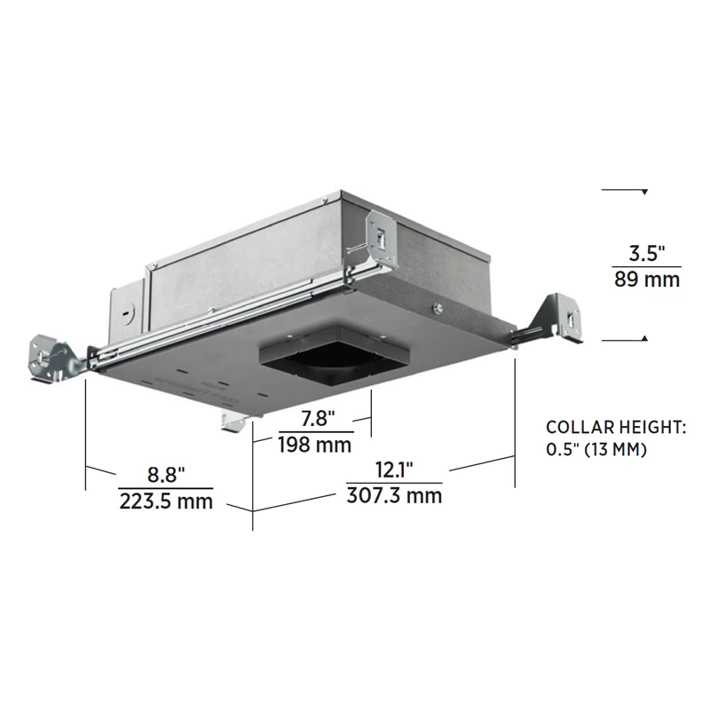 This Entra CL new construction housing is designed for use with an Entra CL 3 inch Square flanged trim.