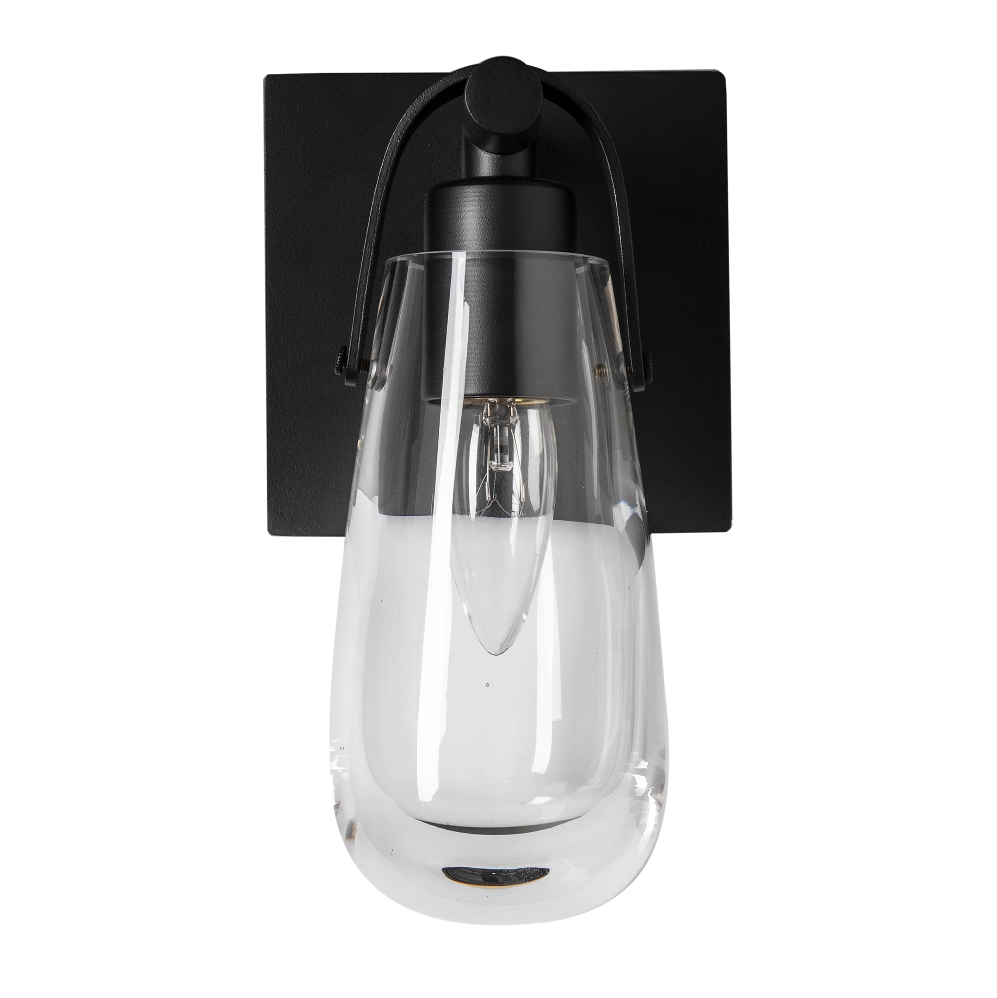 The Eos Wall Sconce is inspired by early morning dewdrops. The Clear glass drop is hanging from a metal u shaped band, casting warm shadows across your room. Lifetime Limited Warranty when installed in residential setting. Handcrafted to order by skilled artisans in Vermont, USA.