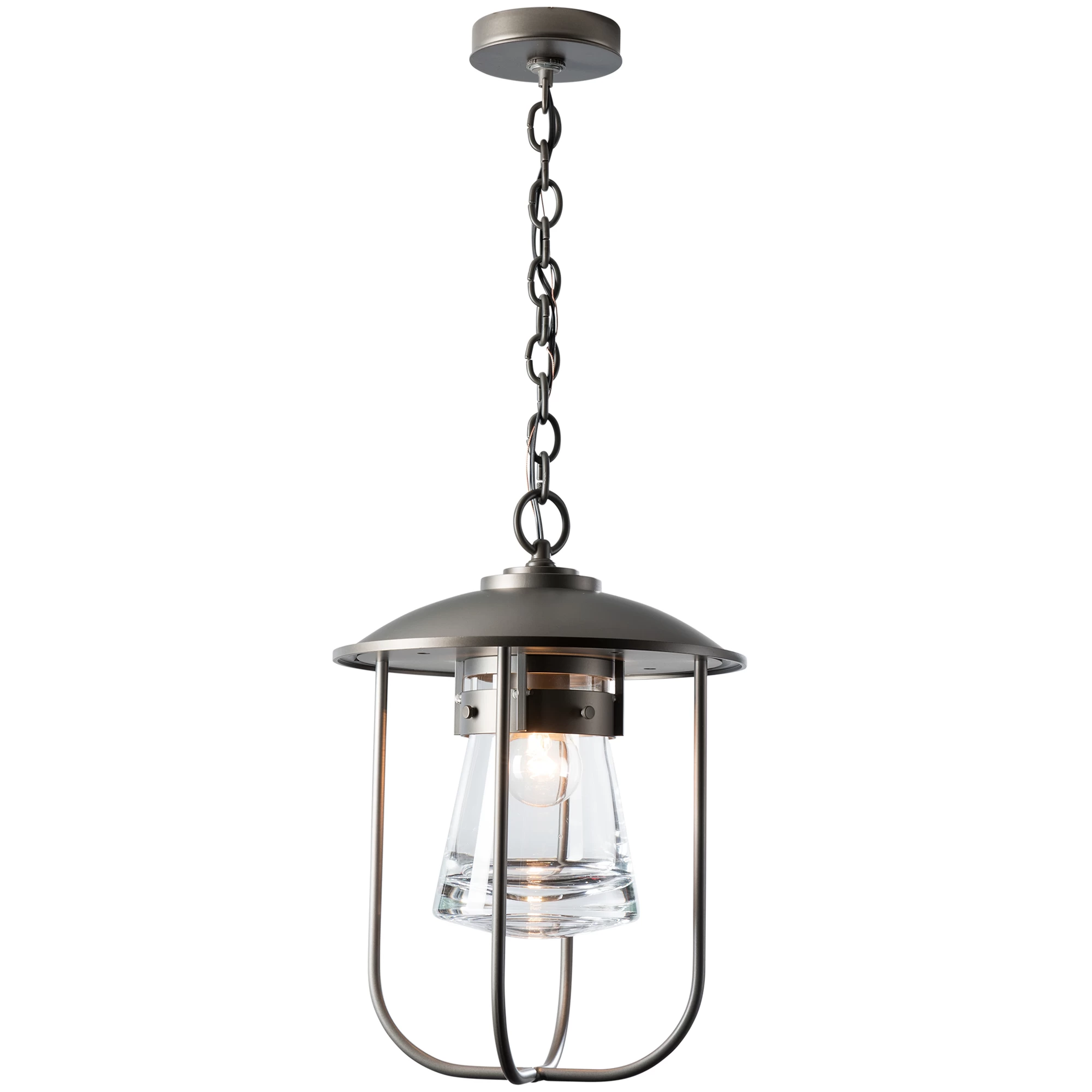 The Erlenmeyer Outdoor Pendant is a tribute to the nautical lanterns found throughout New England. The Clear glass is complemented by a sturdy metal cage.