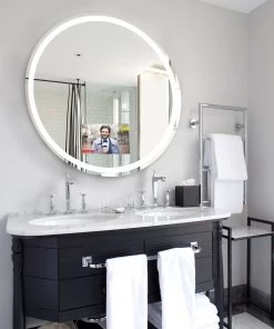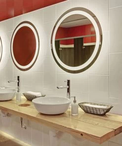 The Eternity Round Lighted Mirror is designed to maximize direct illumination. Ideal for precision tasks such as makeup application and shaving. White powder coated chassis for finished side view. Corrosion resistant DuraMirror glass. Choice of standard forward phase control or with Ava dimming.