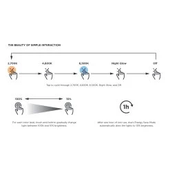 Ava Smart Look technology features tunable white LED lights that allow you to select the color temperature. Select between 6500K for a day of outdoor activities, 4600K for your daily routine, or 2700K for a night out on the town. Tap to Cycle through 2700K, 4600K, 6500K, Night Glow and Off. At every level, hold to dim down to 10%. After one hour of non-use, Energy Save Mode automatically dims lights to 10%.