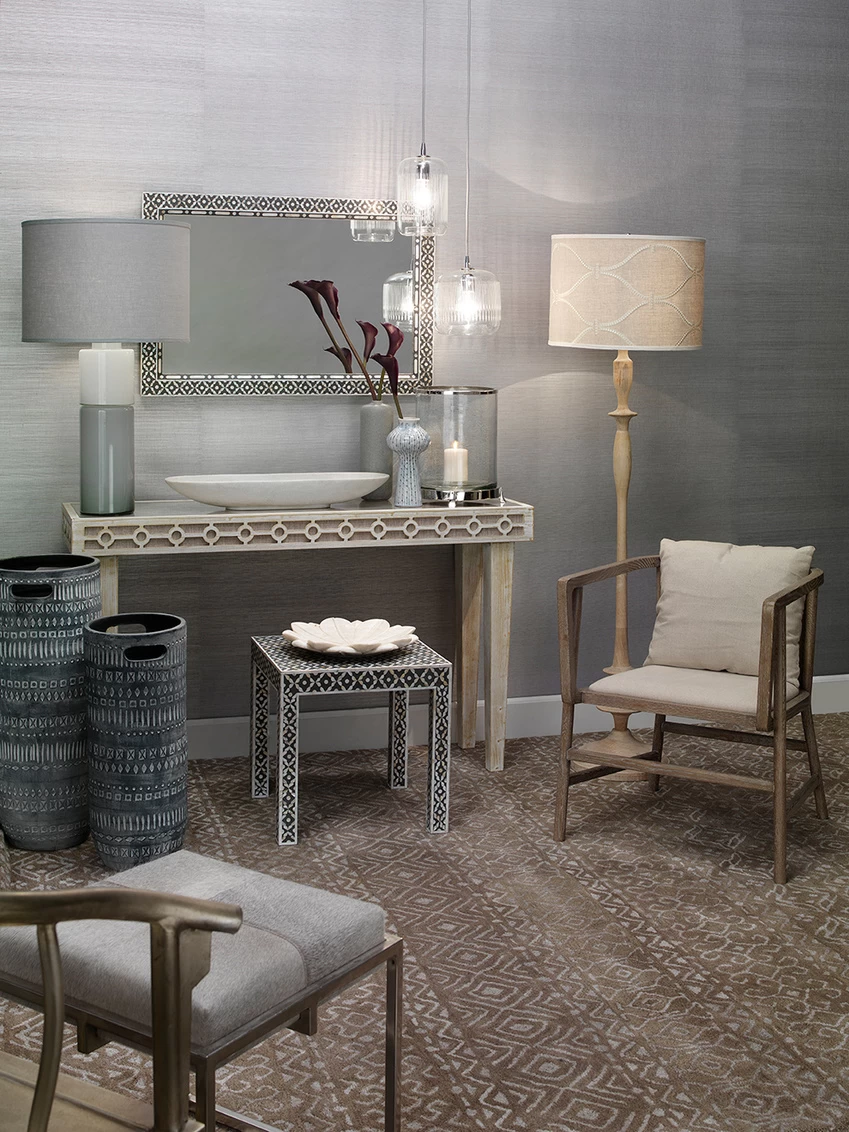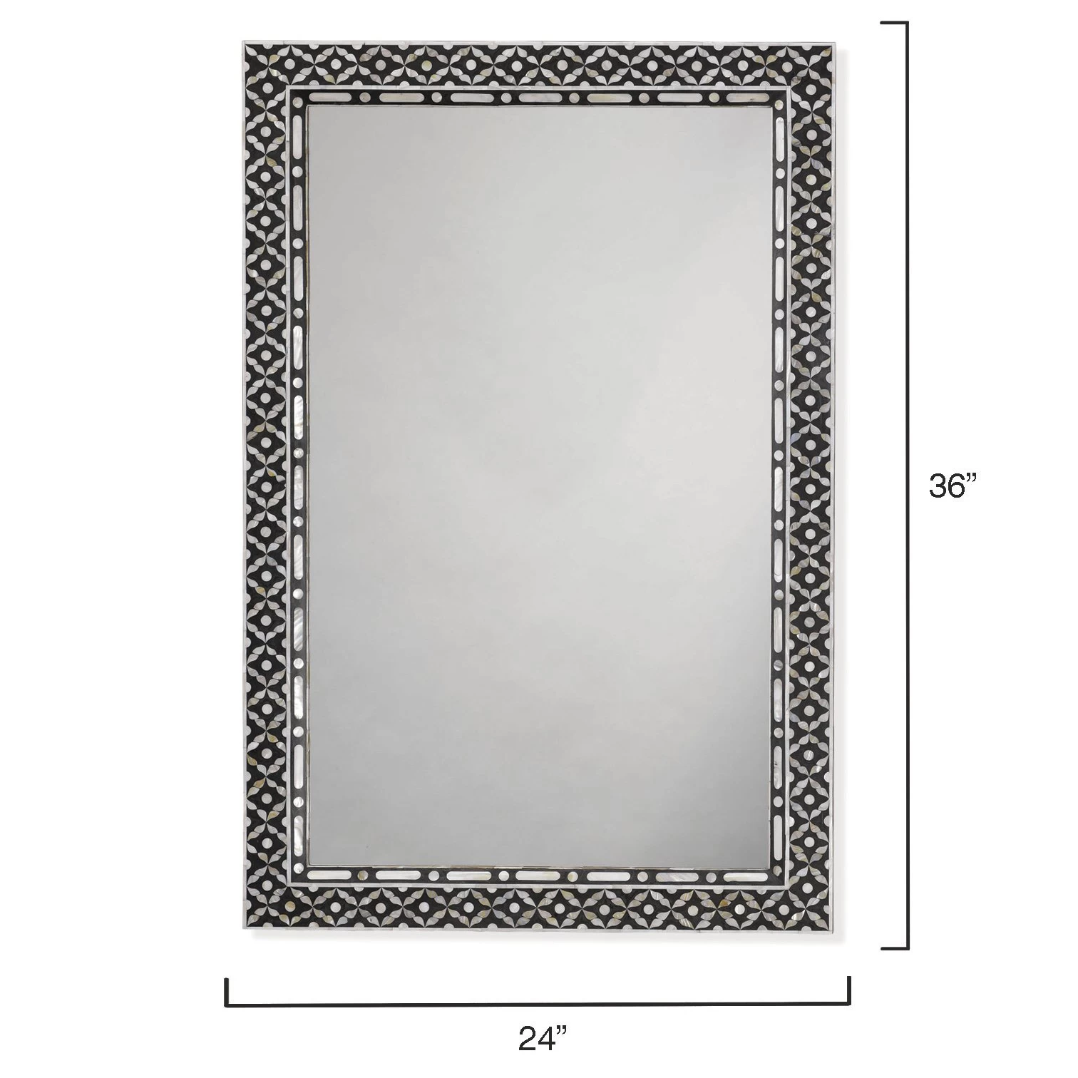 Evelyn Rectangle Mirror features an exquisite inlay of mother of pearl for an exotic yet graceful accent to any room in your home. Hanging hardware included. ADA compliant.