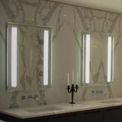 The Fusion Lighted Mirror is designed to maximize direct illumination. Ideal for precision tasks such as makeup application and shaving. White powder coated chassis for finished side view. Corrosion resistant DuraMirror glass.