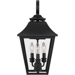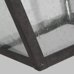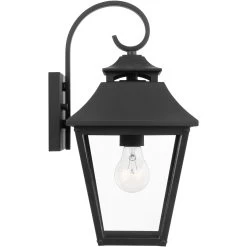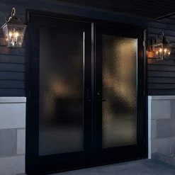 Designed with classic European lantern style, the Galena Outdoor Wall Sconce adds a warm touch to your outdoor space. A curved hook at the top and the vented roofline enhance the traditional look. The Textured Black sconce has smooth clear glass panels, while the Sable is fitted with seeded glass for added character.