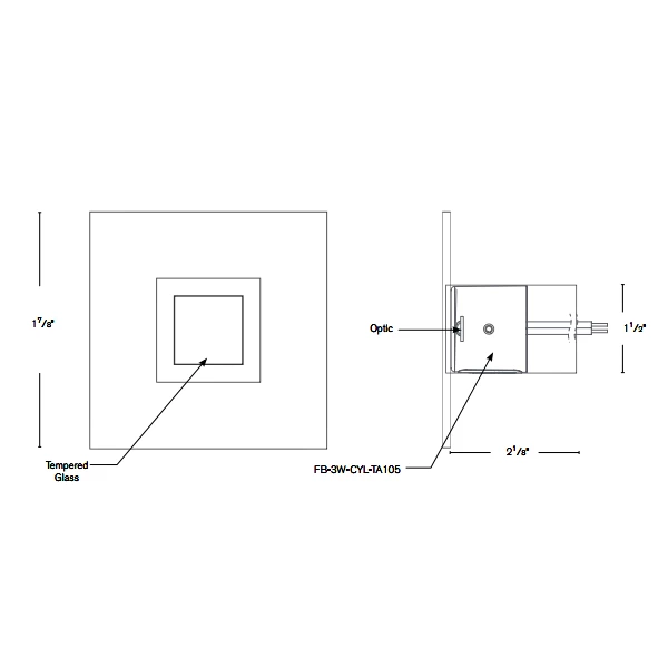 GDG-SQP Outdoor Recessed Wall is made of solid brass or copper with etched finishes in Verde, Rusty, Matte Bronze, Moss, Black or Aged Brass. Includes one 3 watt, 12 volt Nichia Forever Bright LED, 2700K color temperature, 105 lumens. Wide Angle Flood beam spread. Includes recessed box. ETL listed. Suitable for wet locations. Made in USA. 20 year warranty. Dimensions: 1.9 inch width x 1.9 inch height x 2.1 inch depth. Concrete pour sleeves required, sold separately. Requires magnetic transformer, sold separately.