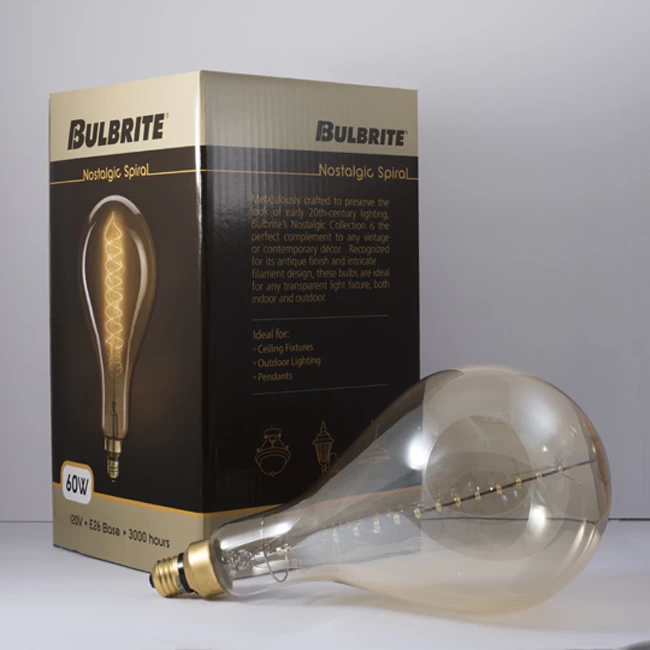 Grand Nostalgic 60 Watt Medium Base 120 Volt Antique Spiral features an intricate filament design with an antique finish for authentic vintage feel.