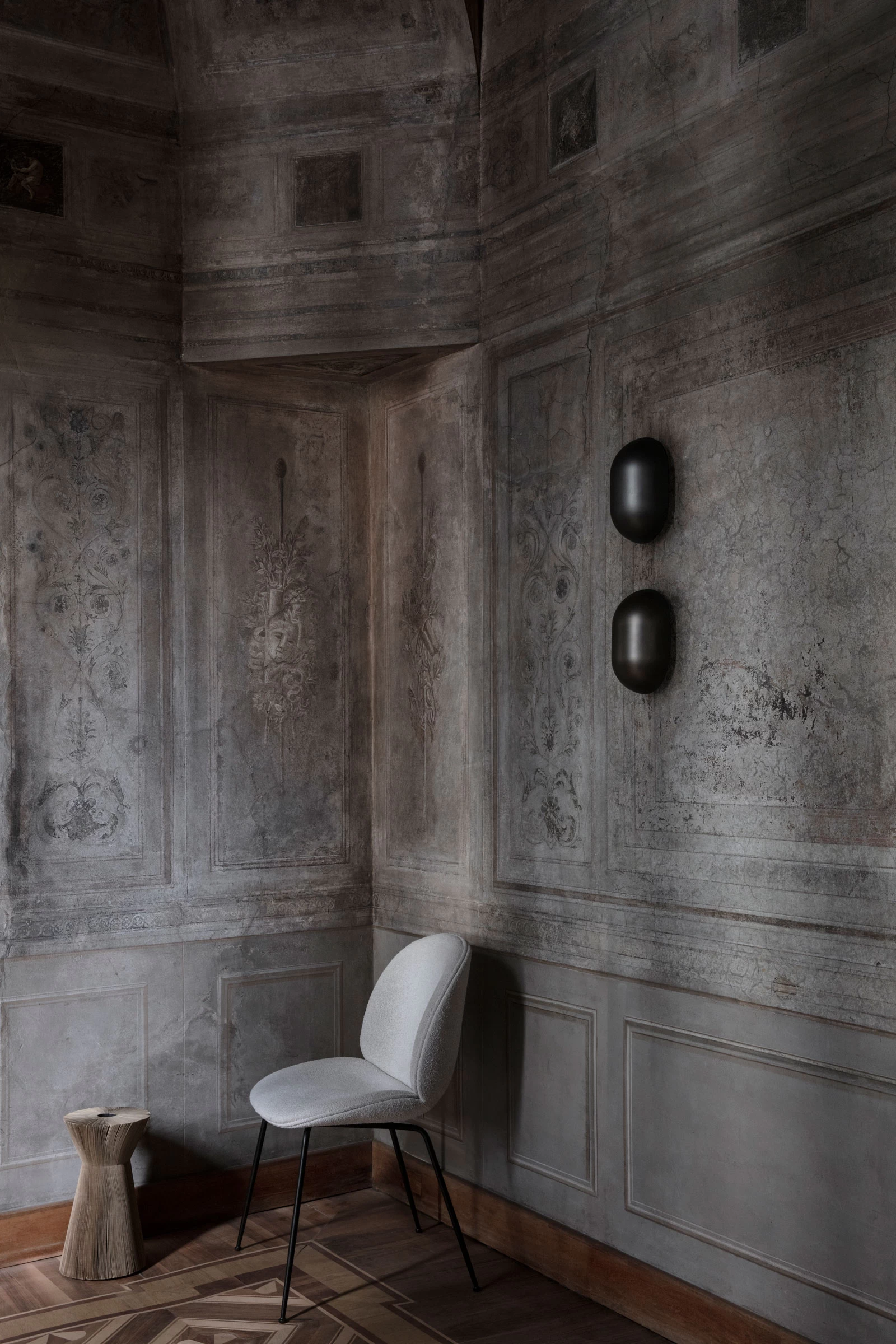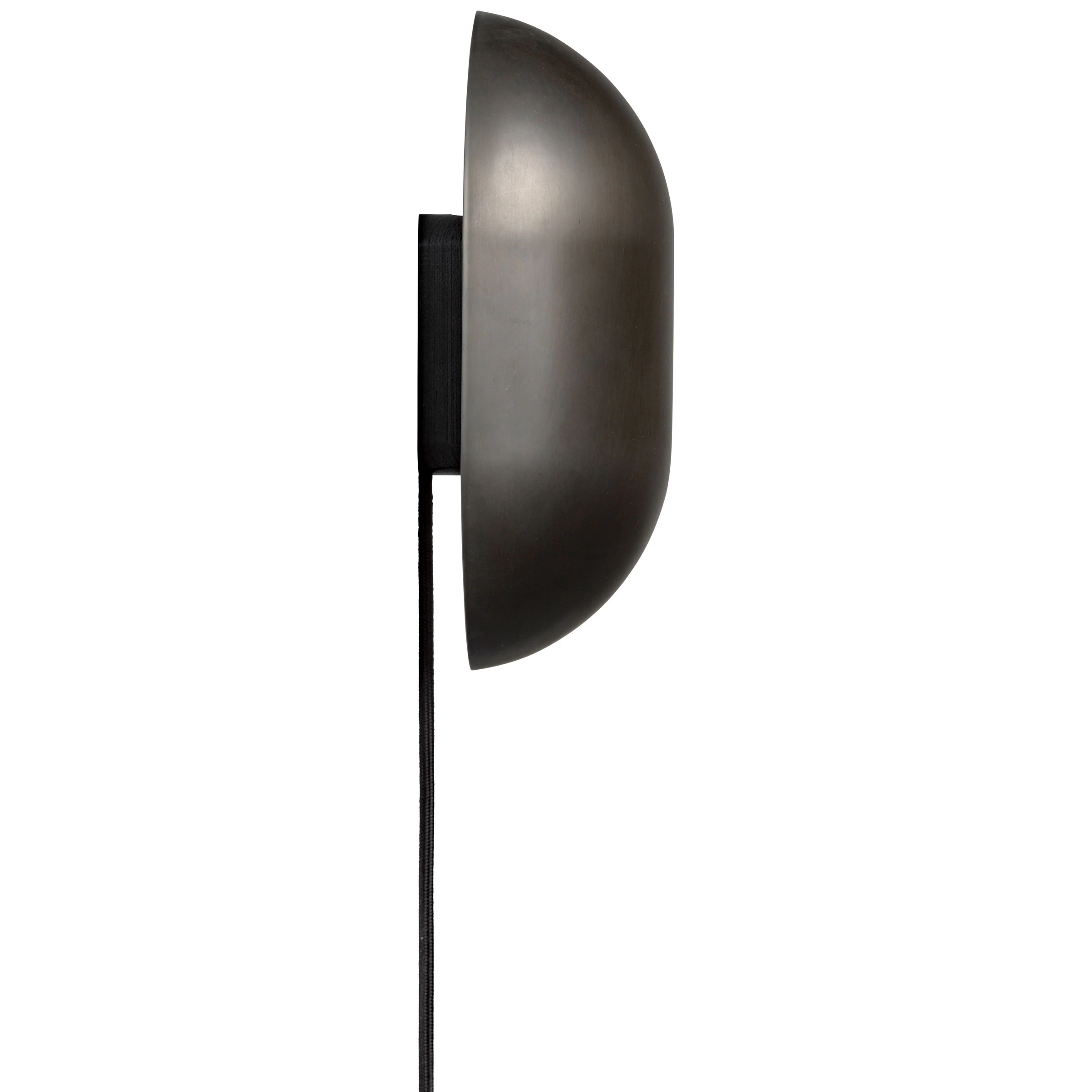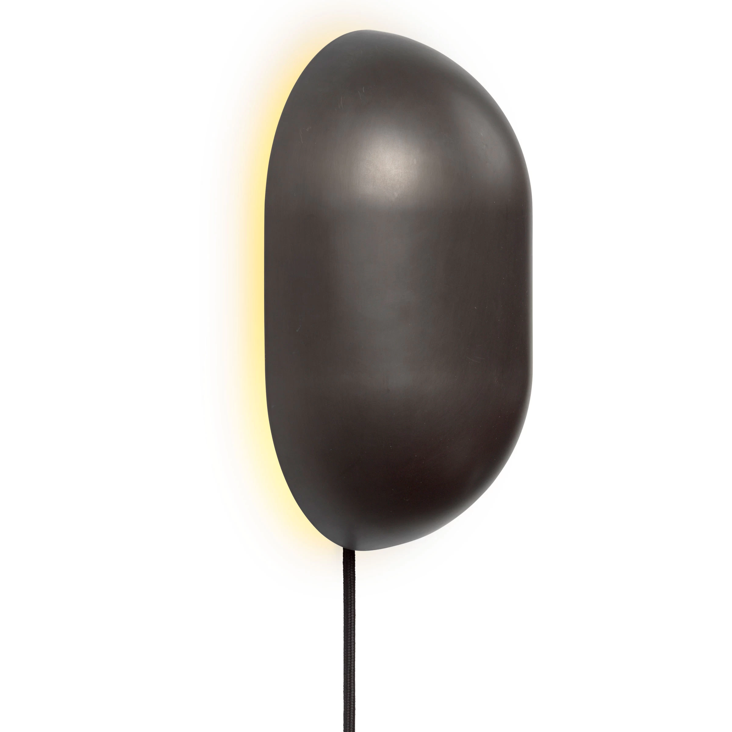 Inspired by the dark metals and industrial aesthetics of New York City, the Howard Wall Sconce is the result of a collaboration between Gubi and Space Copenhagen. The rounded, pill-shaped shade features a Gunmetal metal exterior finish and Brushed Brass interior to add warmth to its subtle, indirect light. May be installed as a hardwired or plug-in fixture. On/off switch located on cord.