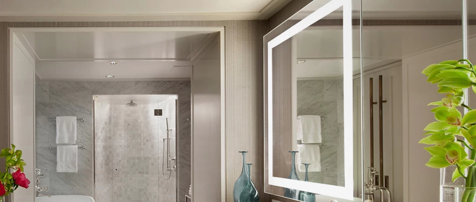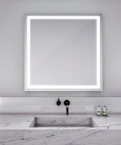 The Integrity Square Lighted Mirror is designed to maximize direct illumination. Ideal for precision tasks such as makeup application and shaving. White powder coated chasis for finished side view. Corrosion resistant DuraMirror glass. Available in two sizes. Choice of standard control or with AVA dimming.